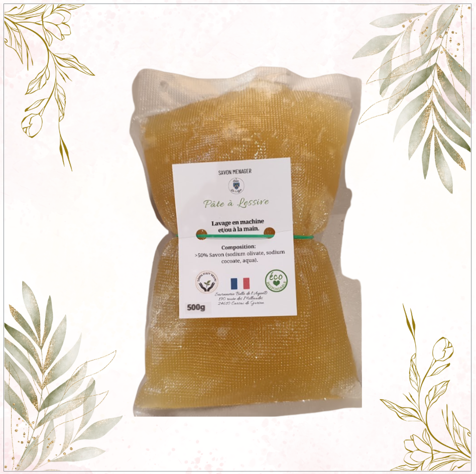 - Concentration maximale : La pâte à lessive est une version beaucoup plus concentrée de notre savon déglycériné, permettant de laver une grande quantité de linge avec une petite dose de produit.